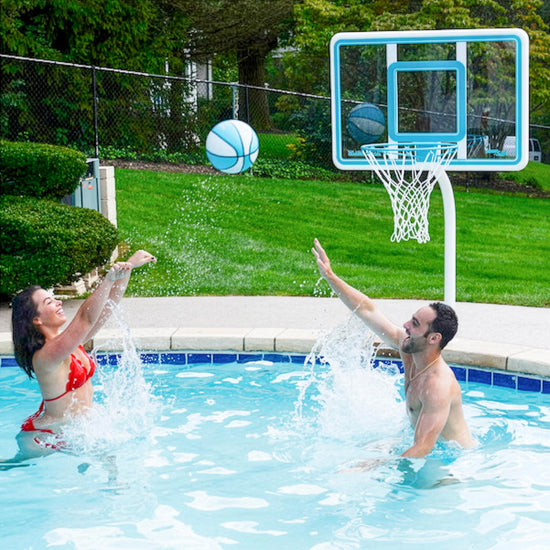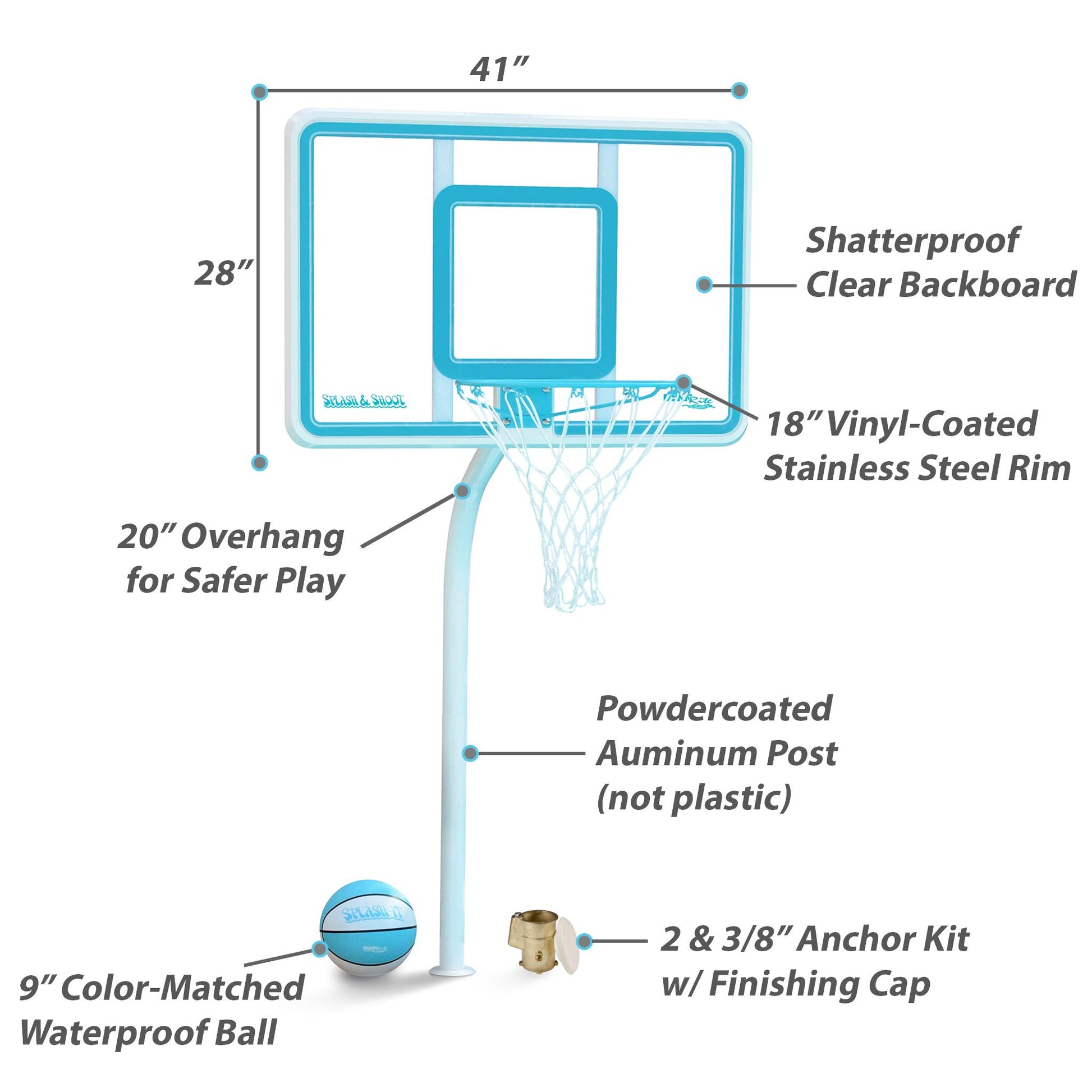 With a regulation-style 46" rim height and a generous 20" overhang that positions the hoop over the water, players can shoot, dunk, and splash without worrying about retrieving balls from the deck. The sturdy 2⅜" post anchors securely into your deck for rock-solid stability and years of dependable play.